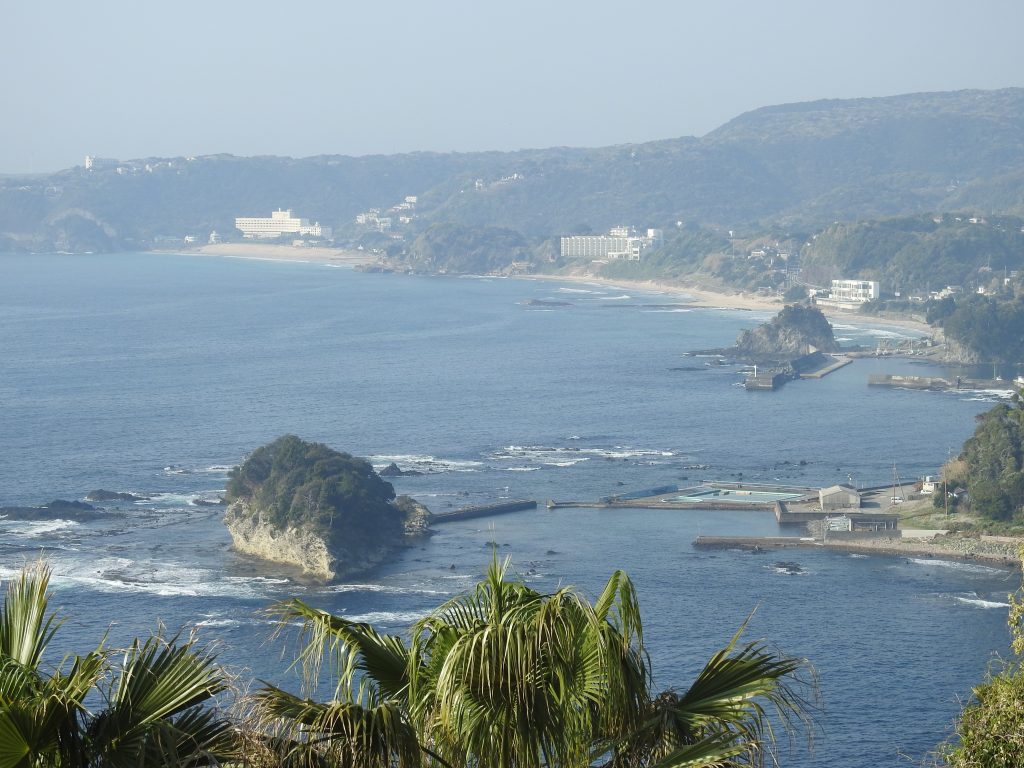最高のロケーションですが、本日は靄がかかり残念でした。左奥が白浜海岸ですね。